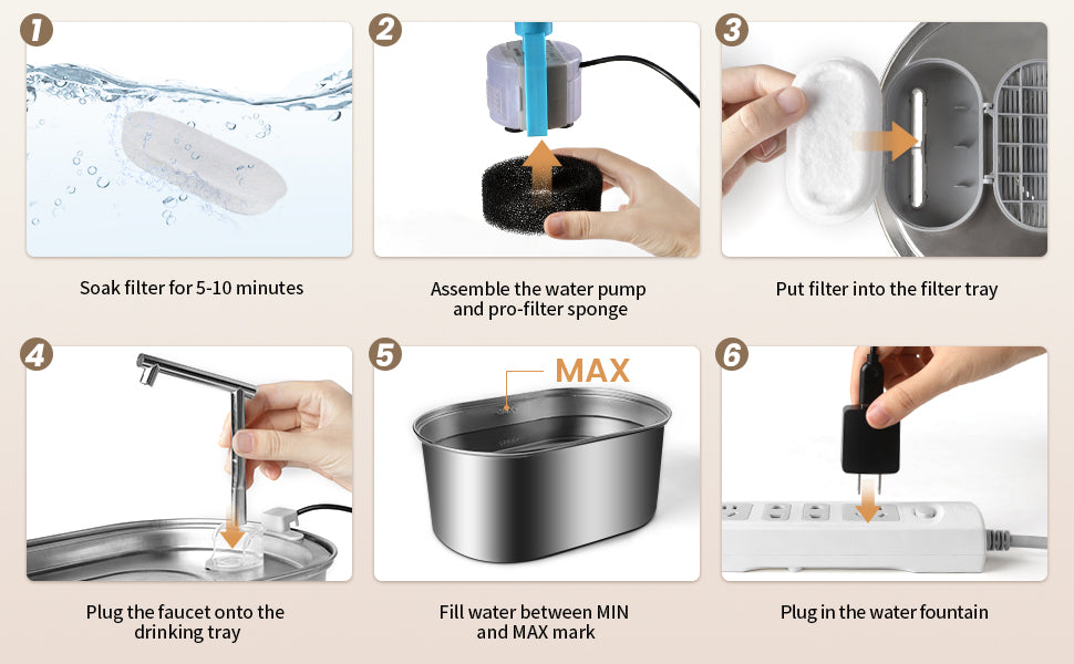 ✓ We recommend replacing the drinking water every 3 days, and change filters every two weeks.