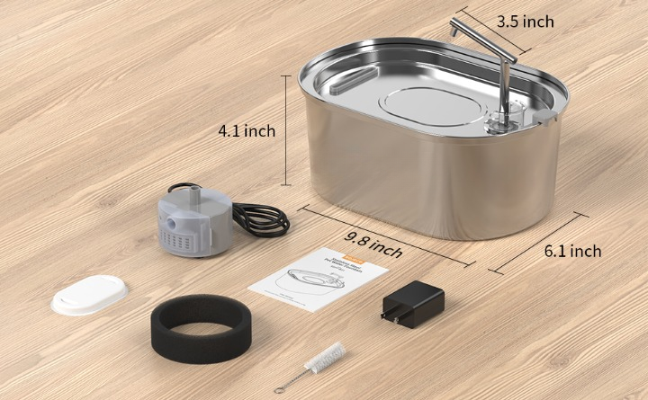 Made of Stainless steel material, our fountain is eco-friendly, smooth, non-toxic, odorless, and durable.