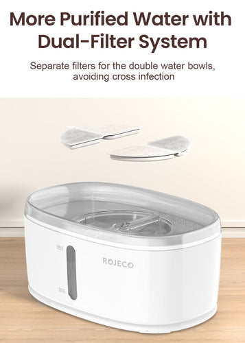 🐱 Dual Bowls Design: The water fountain includes two bowls, allowing multiple pets to drink simultaneously, ensuring they stay hydrated.