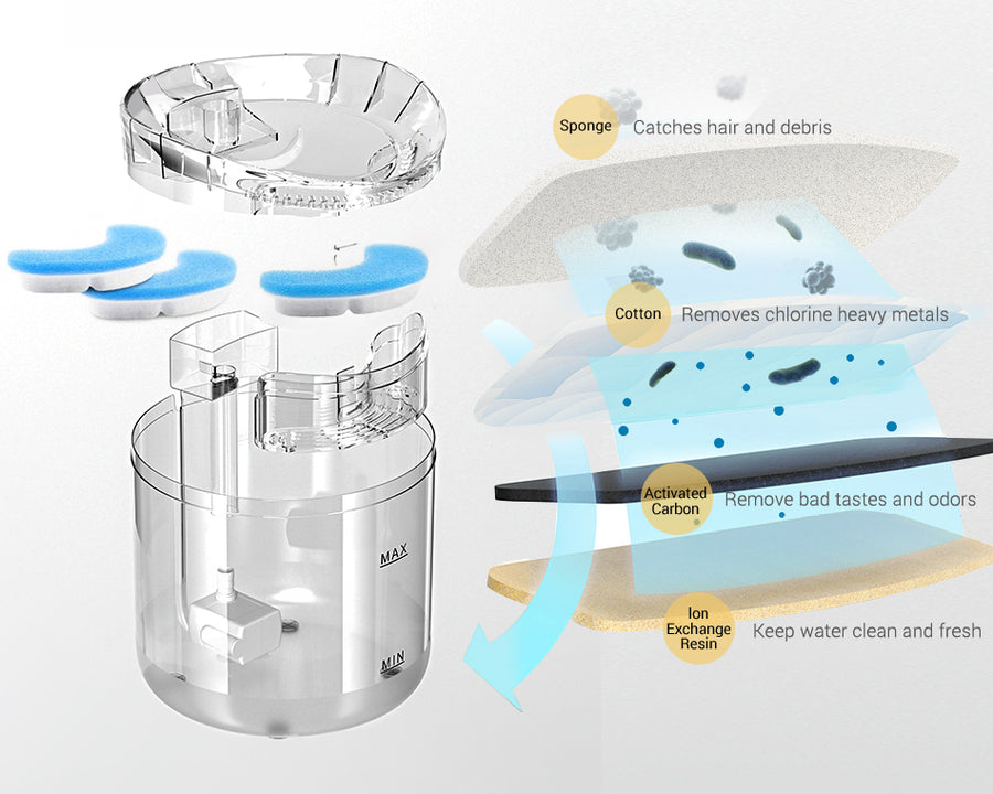 Thanks to the charcoal filter that removes odors, impurities and bad taste, your cat will always have access to clean and fresh water.