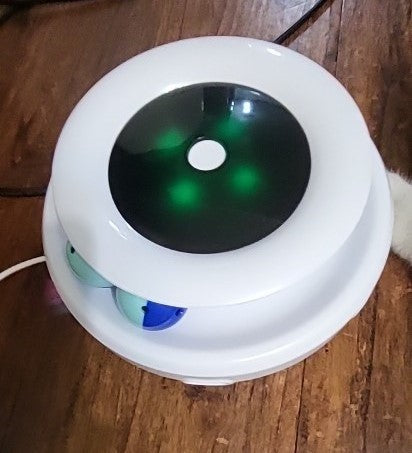 ⭐⭐⭐⭐⭐ " I absolutely love this toy ! The cats are OBSESSED with this, they love it so much, the toys has to be all the time plugged, it has three modes of play, and when is not on the cats play with the ball of the game. I highly recommend it. It's arrived quickly." Vanessa.G