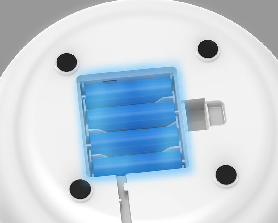 You can purchase 4*AA batteries (not included) or connect it to directly to a power source using a cable.