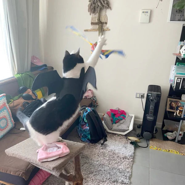 Not only does our Electric Flying Bird encourage physical activity, but it also stimulates your cat's mental agility. It helps prevent boredom and destructive behavior by providing a healthy and entertaining form of stimulation.
