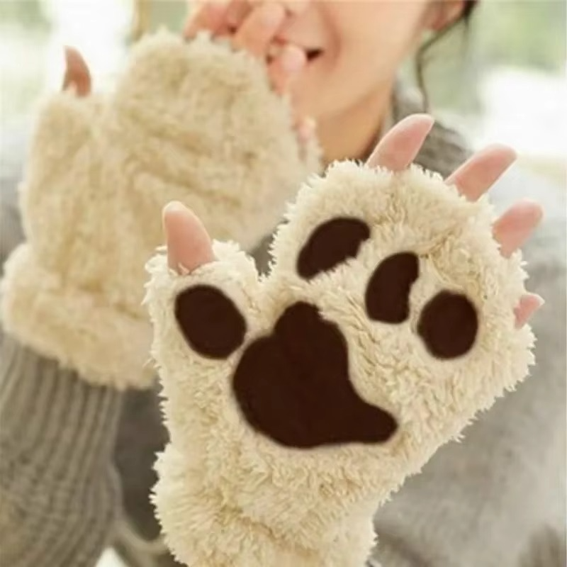 Cat Claw Gloves – Thickened Plush Winter Mittens with Exposed Fingers