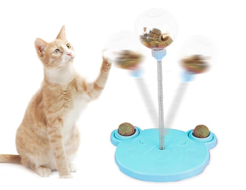 The combination of treat-dispensing moving balls and feather toys with bells, is designed as a multi-functional toy that combines feeding and playtime in one product. It creates an interactive experience that satisfies their curiosity and energy.