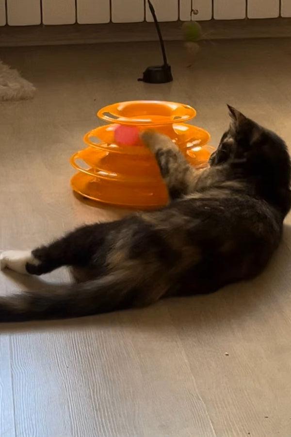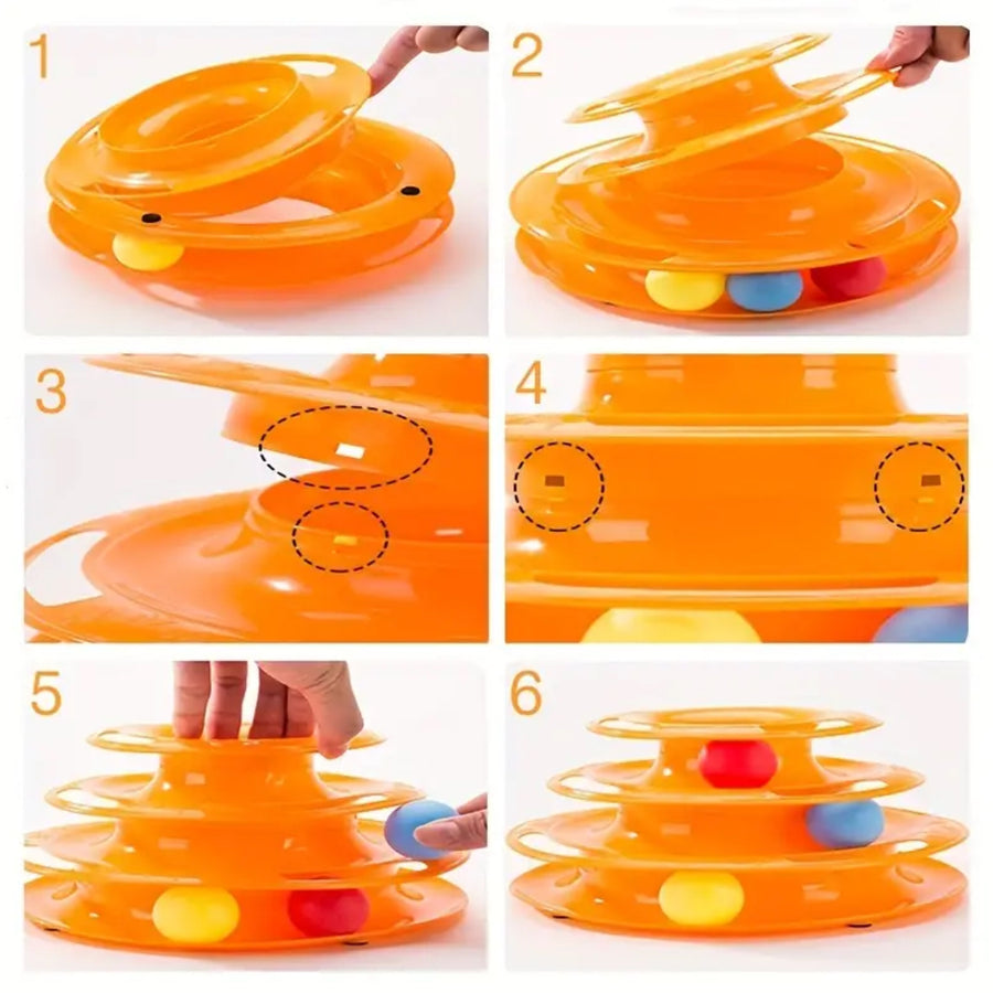 Multi-Level Fun: Three stacked tracks with brightly colored balls to keep your cat engaged and excited, stimulating their instincts and encouraging active play.