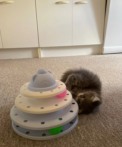 This Three-Layer Cat Toy is the ultimate interactive toy that provides physical exercise and mental stimulation, keeping your cat happy and entertained!
