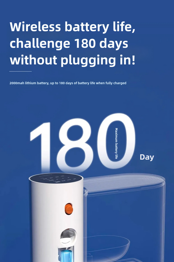 Long-Lasting Battery Life: 2000mAh rechargeable battery keeps the fountain running for up to 180 days on a single charge—no more constant recharging!