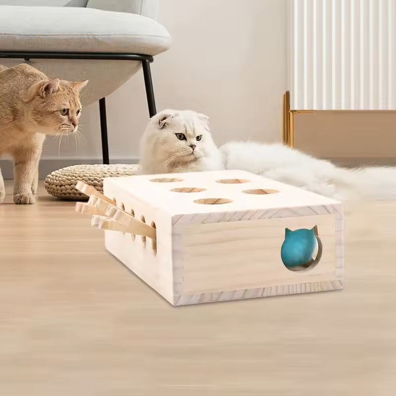 Whack-a-Mole Wooden Interactive Cat Toy - Durable & Fun Playtime